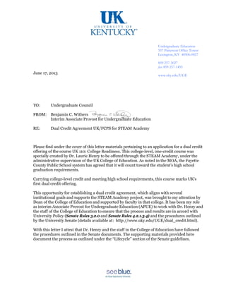 University Of Kentucky S First Dual Credit Partnership Proposal To Un